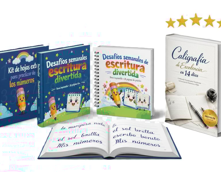 Es un pack de ebooks que incluye un método guiado para transformar tu escritura: postura, agarre del lápiz, ejercicios y prácticas para lograr una letra inigualable y ordenada. Además, vienen cuadernos de ejercicios listos para imprimir y usar, con el alfabeto en minúsculas, mayúsculas y números.